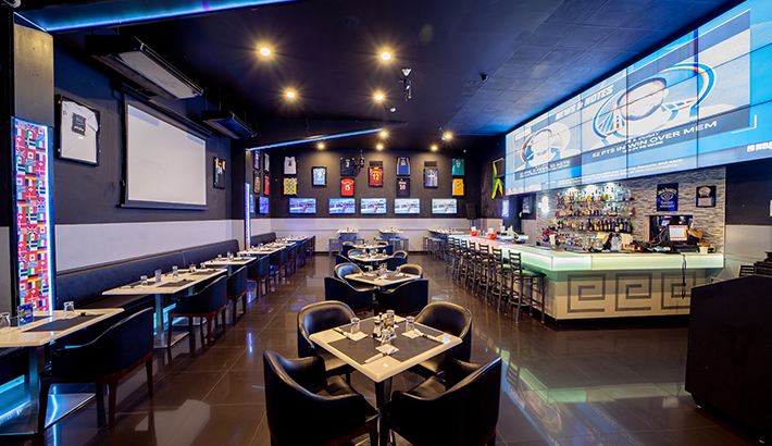 With a 25-foot video wall in a cool, air-conditioned lounge, the Sports Bar is the ultimate in cutting-edge technology and entertainment. Every seat in the lounge allows visibility of the largest HDMI TV screen in Jamaica. Comfortable seating and a state of the art bar provide the perfect setting to watch your favourite sports while enjoying delicious cocktail specials, cue and beer bucket deals to enjoy with friends.